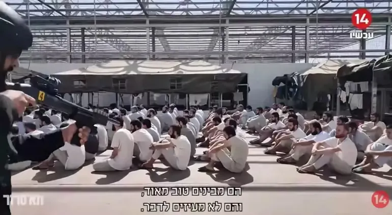 Birçok Filistinli mahkum, cezaevilerinde işkence görürken kötü muamaleye maruz kaldı. İnsanlık dışı eylemler devam ederken İsrail'in C14 kanalında yayınlanan görüntüler, zulmü bir kez daha gözler önüne serdi.