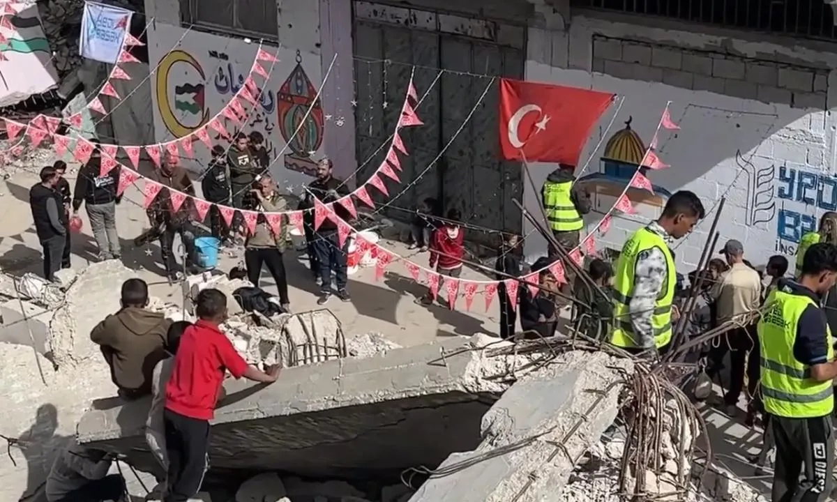 İsrail’in bölgede ağır saldırıları devam ederken Gazze Şeridi’nin güneyinde yer alan Han Yunus kentinde yıkık binaların arasında Türk bayrakları altında Ramazan ayı hazırlıkları başladı.