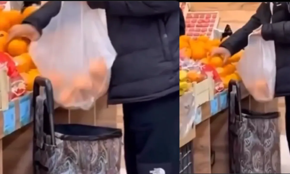 Marketin manav reyonuna giden kişi, burada meyve seçermiş gibi yaparak eline almış olduğu portakalları hem pazar arabasına, hem de poşete attı.