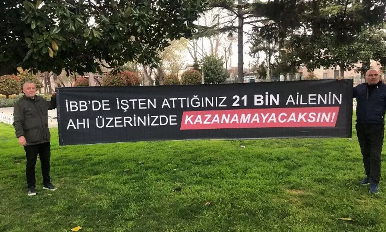 Birçok nokta da skandal atamalar yapan CHP'li İBB Başkanı Ekrem İmamoğlu, çok sayıda insanı mağdur bıraktı. Bununla beraber Mart ayı içerisinde 2019 yılında işten çıkarıldıklarını iddia eden 2 işçi, Saraçhane'de belediye binası önünde eylem yapmıştı. İBB'de işten attığınız 21 bin ailenin ahı üzerinizde, kazanamayacaksınız” yazılı pankart açan işçiler, hak ettikleri tazminatların kendilerine ödenmesini talep etmişti.