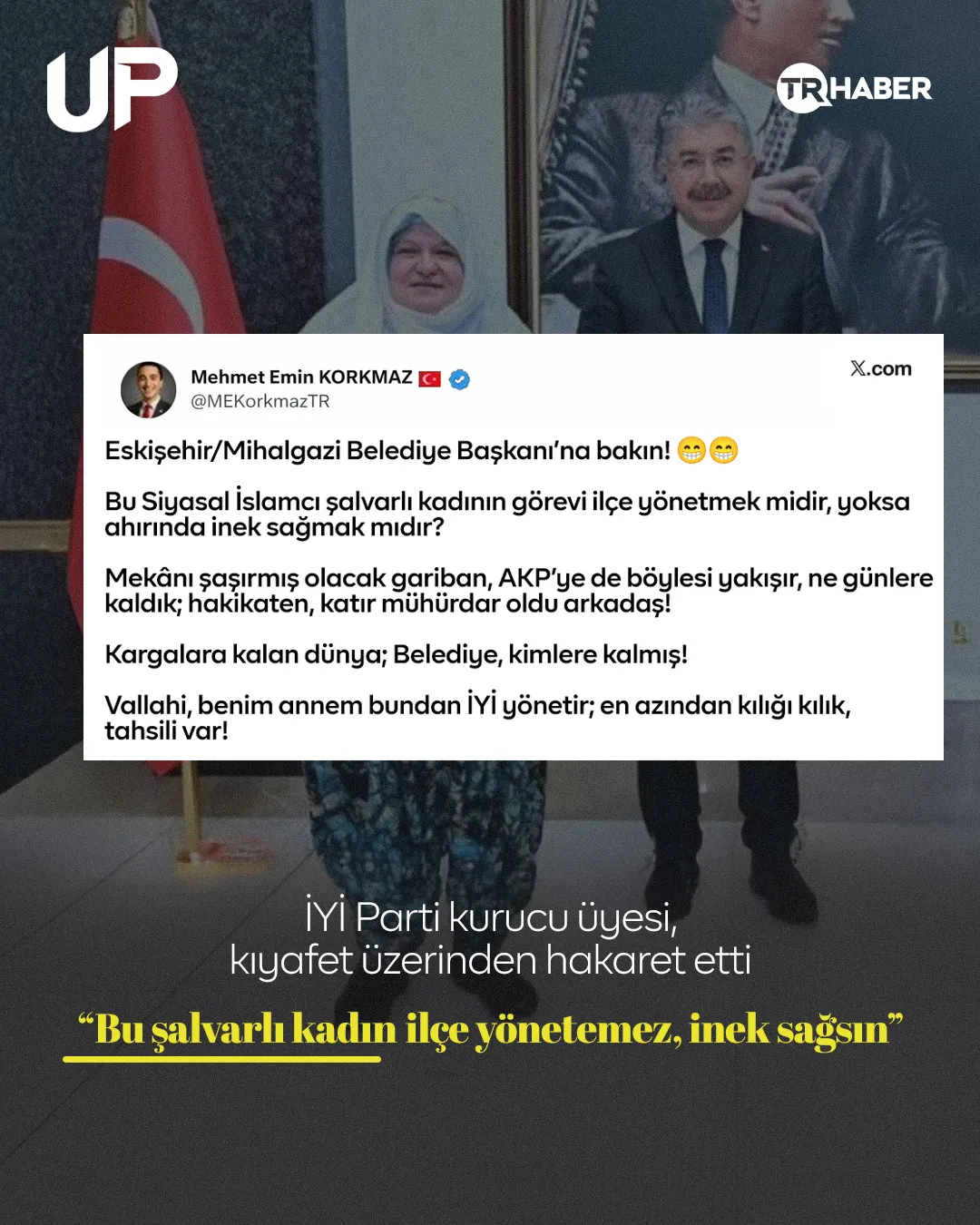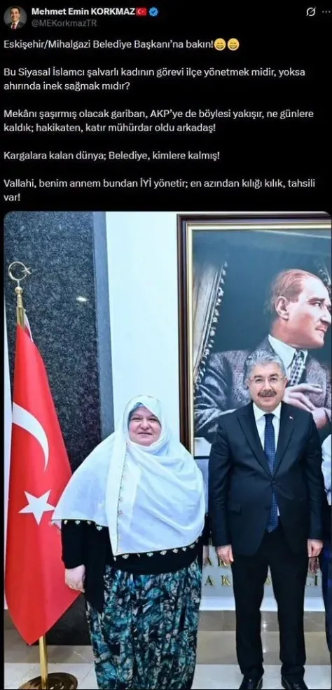 Korkmaz 5 Şubat’ta AK Parti Eskişehir Teşkilatı’nın ziyaretinde Vali Dr. Erdinç Yılmaz ile çekilen toplu fotoğraf üzerinden Başkan Güneş’i hedef alan paylaşımda bulundu. Paylaşımında Güneş’i “siyasal İslamcı şalvarlı kadın” gibi ifadelerle küçümseyen Korkmaz, sosyal medyada geniş tepki topladı ve sonrasında hesaplarını kapattı.