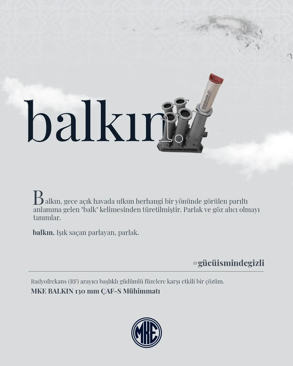 "Su üstü sabit ve hareketli platformları RF arayıcı başlıklı güdümlü füzelere karşı korumak üzere geliştirdiğimiz MKE BALKIN 130 mm ÇAF-S mühimmatımızın deniz platformu testlerini başarıyla tamamladık. Deniz platformlarının koruma seviyesini ileriye taşıyacak MKE BALKIN'ı Mavi Vatan'ımızın ve asil milletimizin hizmetine sunmaktan mutluluk duyuyoruz."
