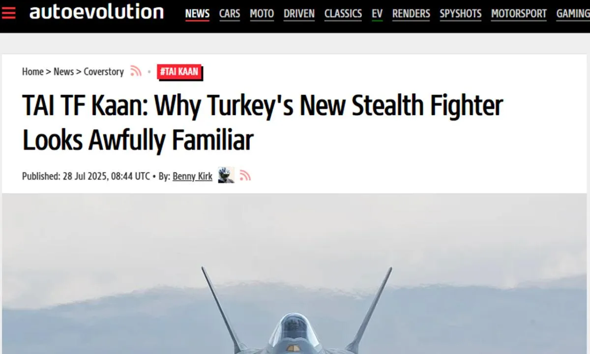 Türkiye'nin yerli ve milli 5. nesil savaş uçağı KAAN, Amerikan medyasını kendisine hayran bıraktı. ABD merkezli Autoevolution haber sitesi, "Amerika Birleşik Devletleri'nin uzun yıllar elinde tuttuğu "gizli savaş uçağı" egemenliğine meydan okuyan KAAN, Türk Hava Kuvvetleri için yeni bir dönemin kapılarını aralayacak." yorumunda bulundu.