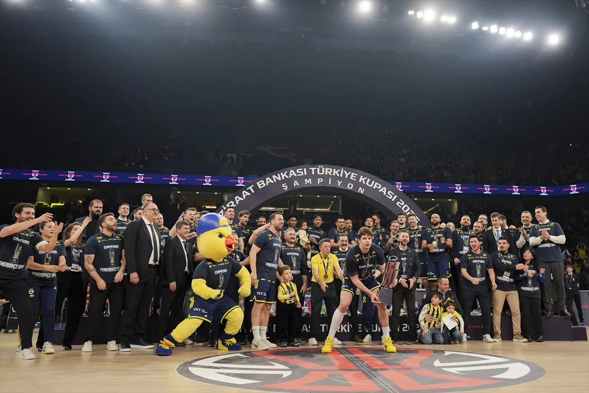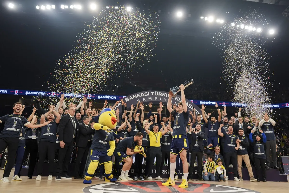 Şampiyonluk kupasını ise Gençlik ve Spor Bakanı Osman Aşkın Bak ile TBF Başkanı Hidayet Türkoğlu, kaptan Melih Mahmutoğlu’na verdi. Mahmutoğlu, anlamlı bir jest yaparak kupayı Tarık Biberovic’e uzattı. Genç yıldızın kupayı havaya kaldırmasıyla salonda büyük coşku yaşandı. Sarı-lacivertli ekip, şampiyonluğu taraftarıyla kutladı.