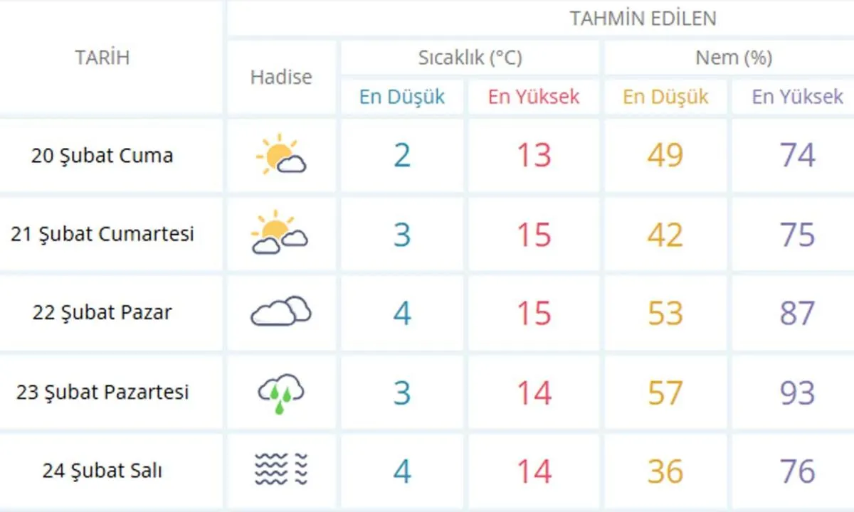 Meteoroloji Bölge Müdürlüğü'nün paylaştığı verilere bakıldığında, hafta sonu sıcaklıklar düşecek. Daha sonrasında ise haftanın ilk günü yağmur yağması tahmin ediliyor.